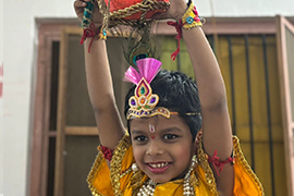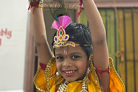 A special program was organized where children offered prayers and participated in the preparation of the traditional Gopal Kala dish, symbolizing sharing and togetherness. Cultural performances, devotional songs, and enactments depicting the life of Lord Krishna filled the atmosphere with enthusiasm and devotion.