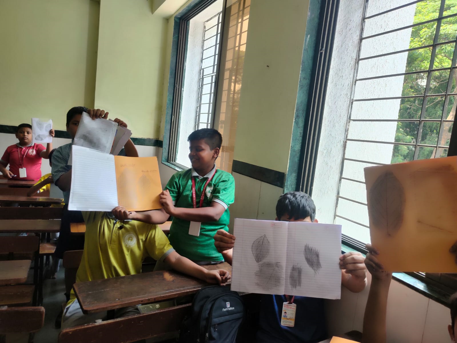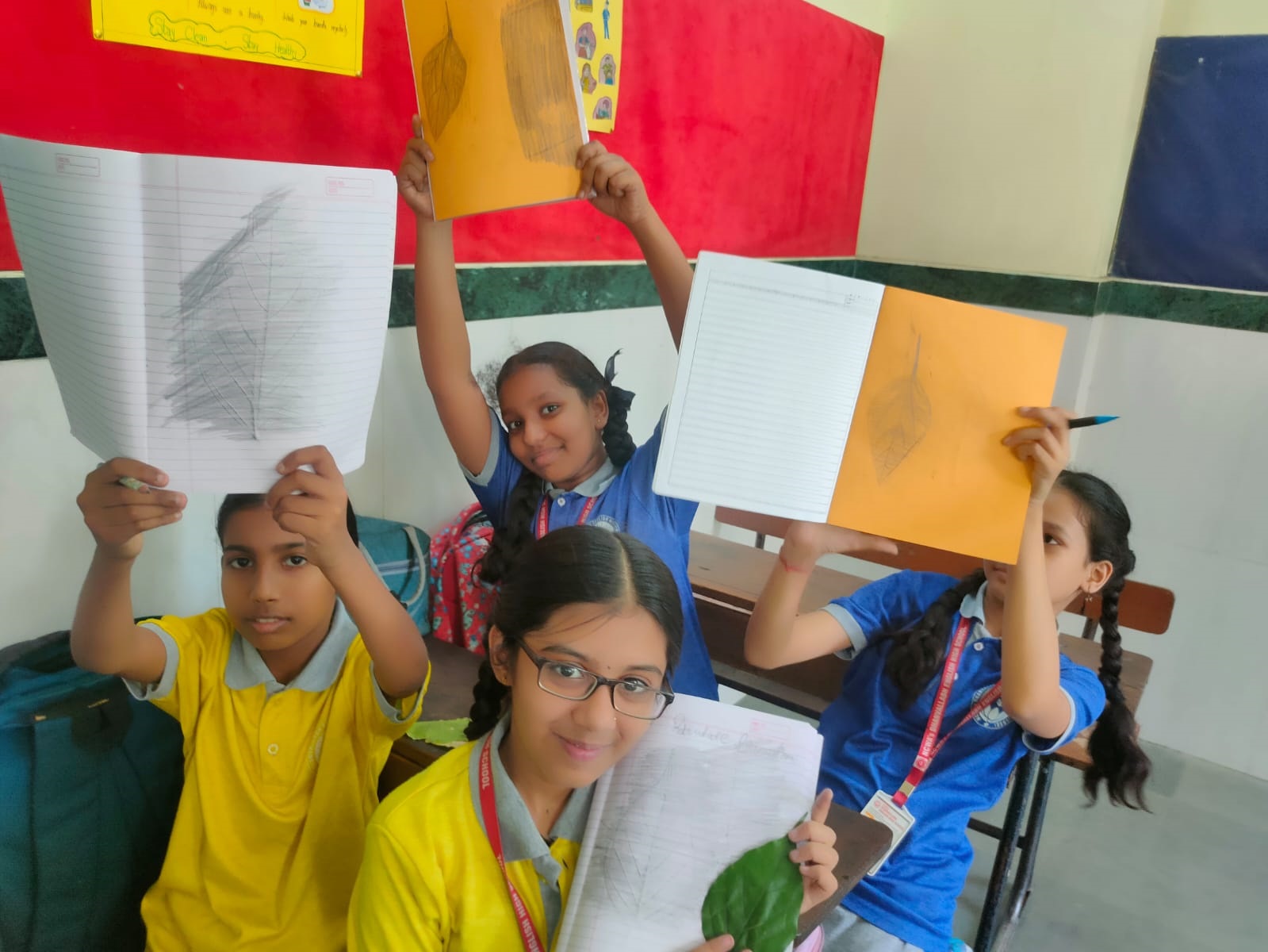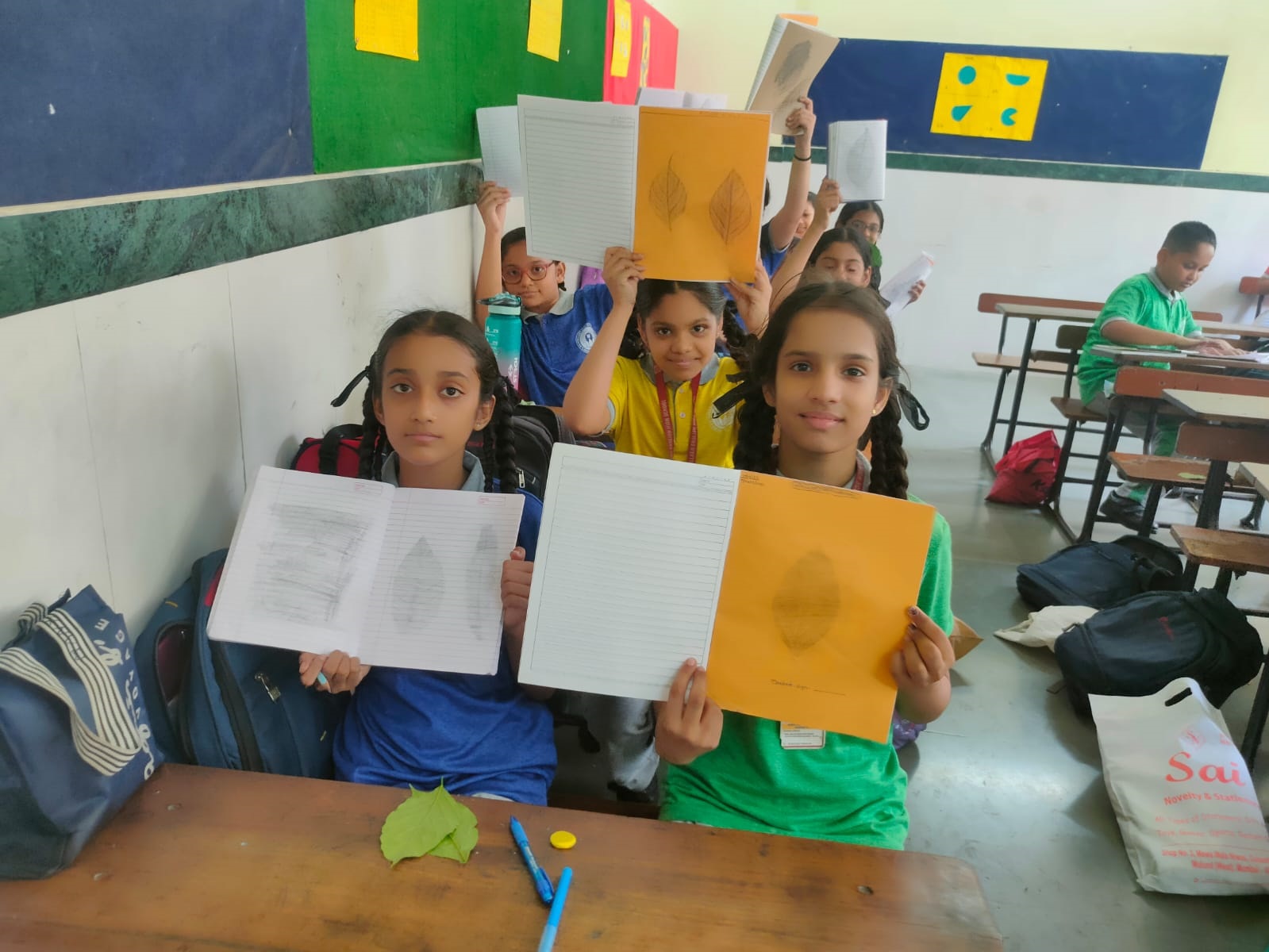 - Students collected various leaves from the school garden and surrounding areas.