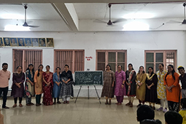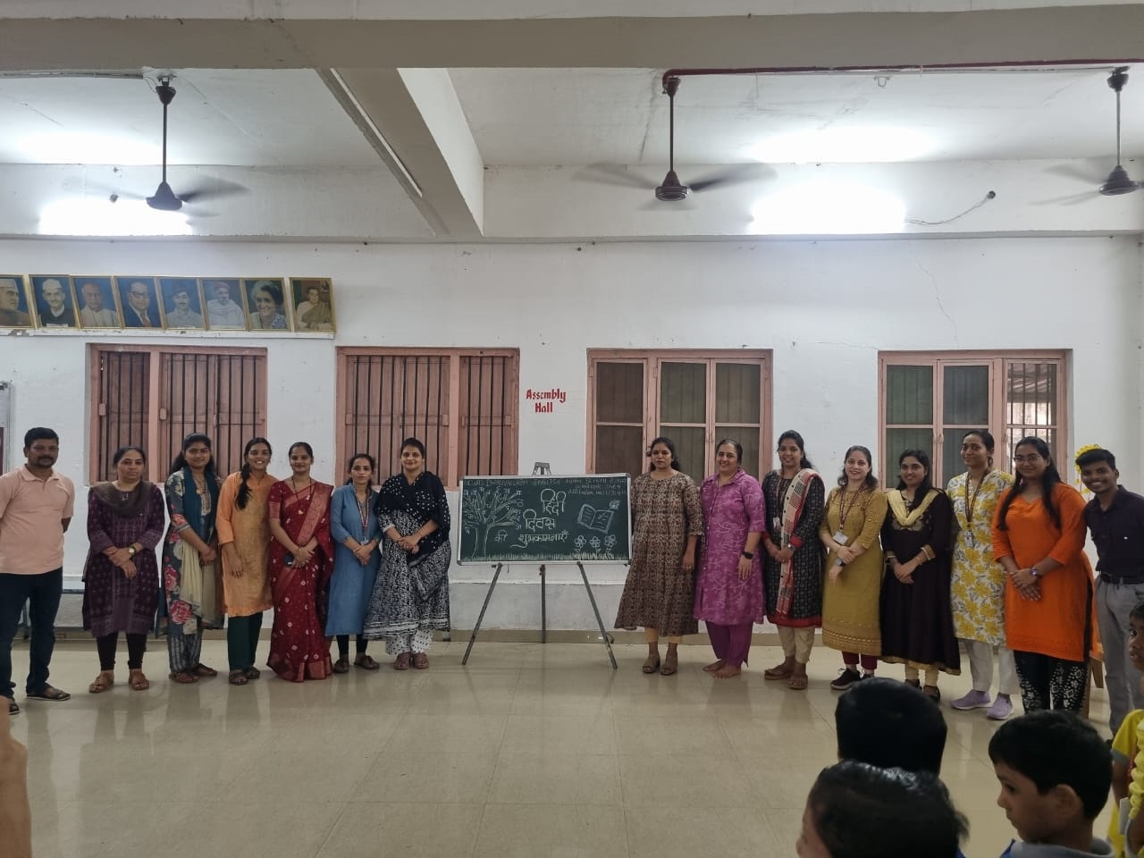 On this special day, Principal Dr. Shyamala Rao addressed the gathering and highlighted the significance of Hindi Diwas. She explained why English is currently given importance in education — because most higher-education texts are written in English — and inspired students to imagine a future where advanced learning materials are available in our own languages, removing barriers and creating equality.