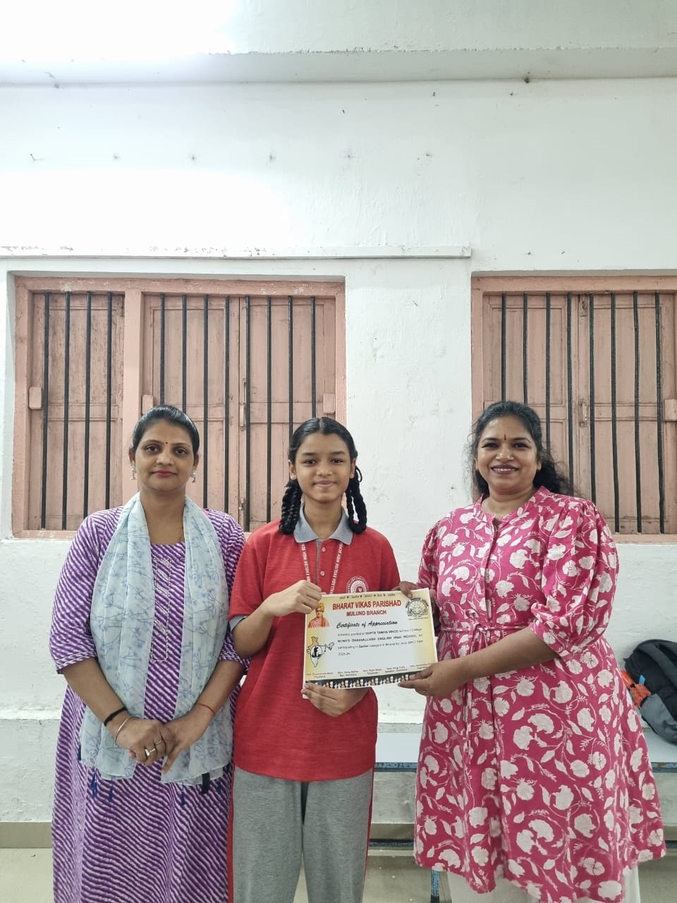 We are pleased to inform the Management that our students actively participated in the National Group Song Competition (NGSC), the Sanskrit Group Song Competition (SGSC), and the Bharat Ko Jano Quiz Competition organized by Bharat Vikas Parishad, held on 24th of August 2025 & 7th of September 2025, respectively.