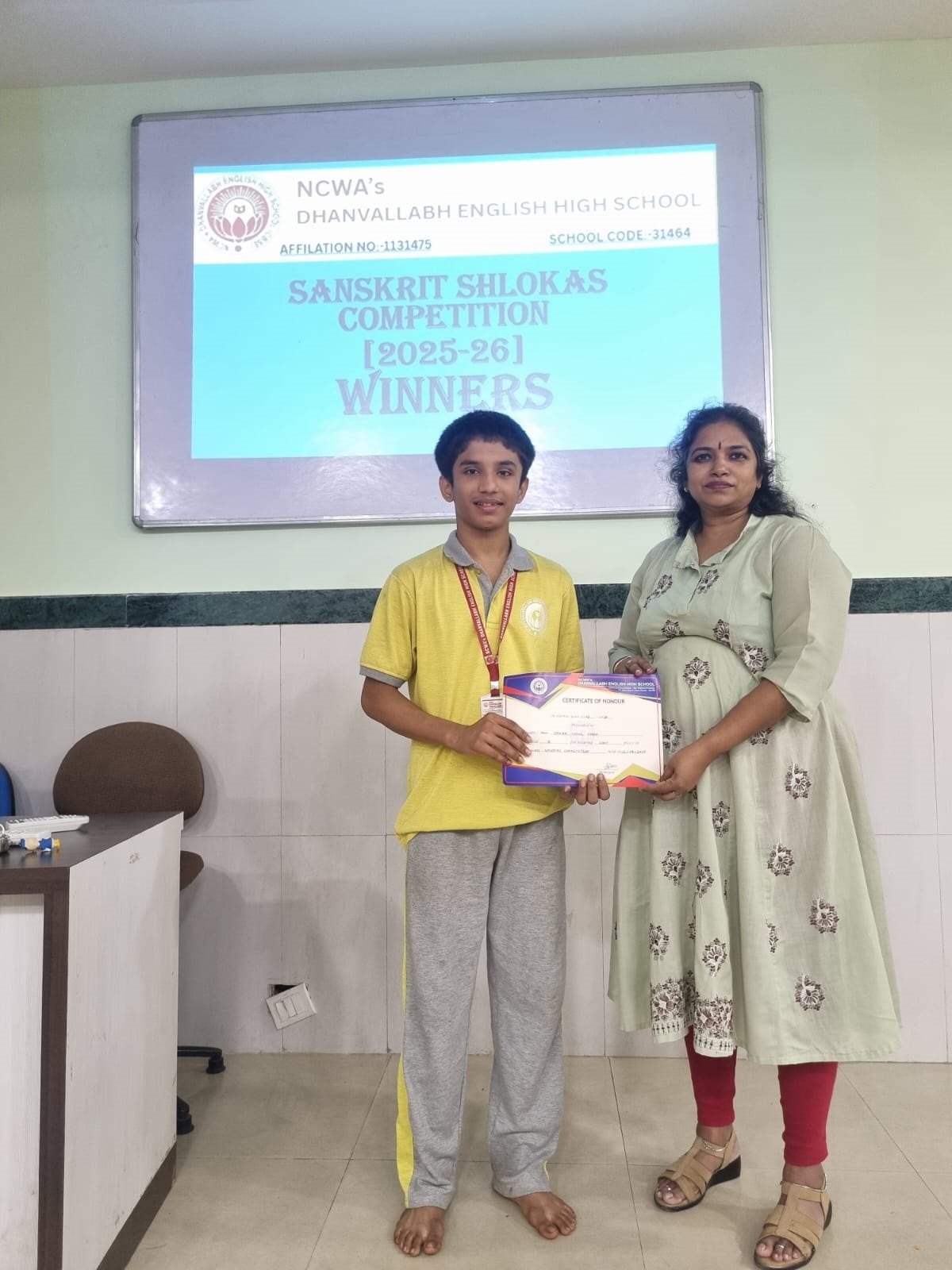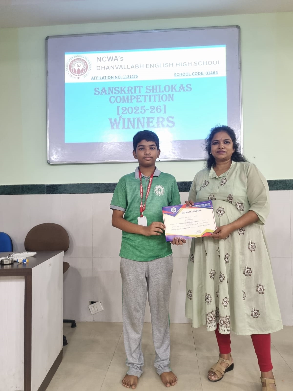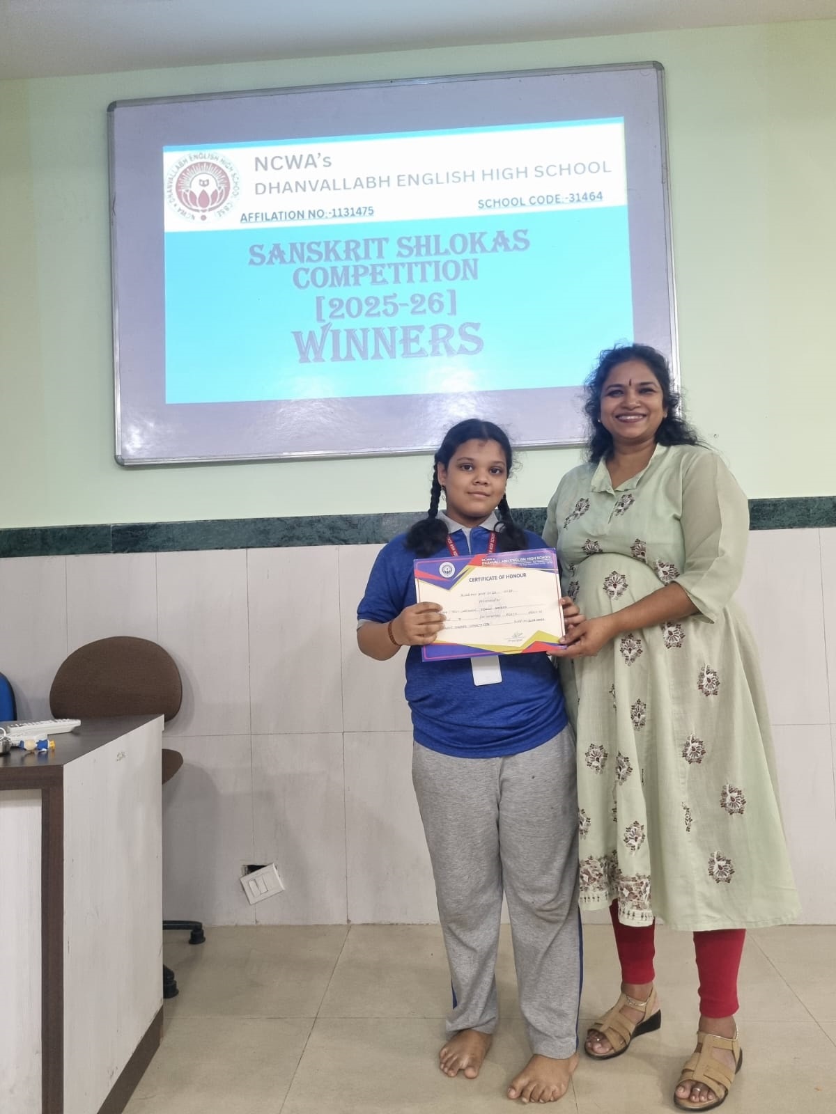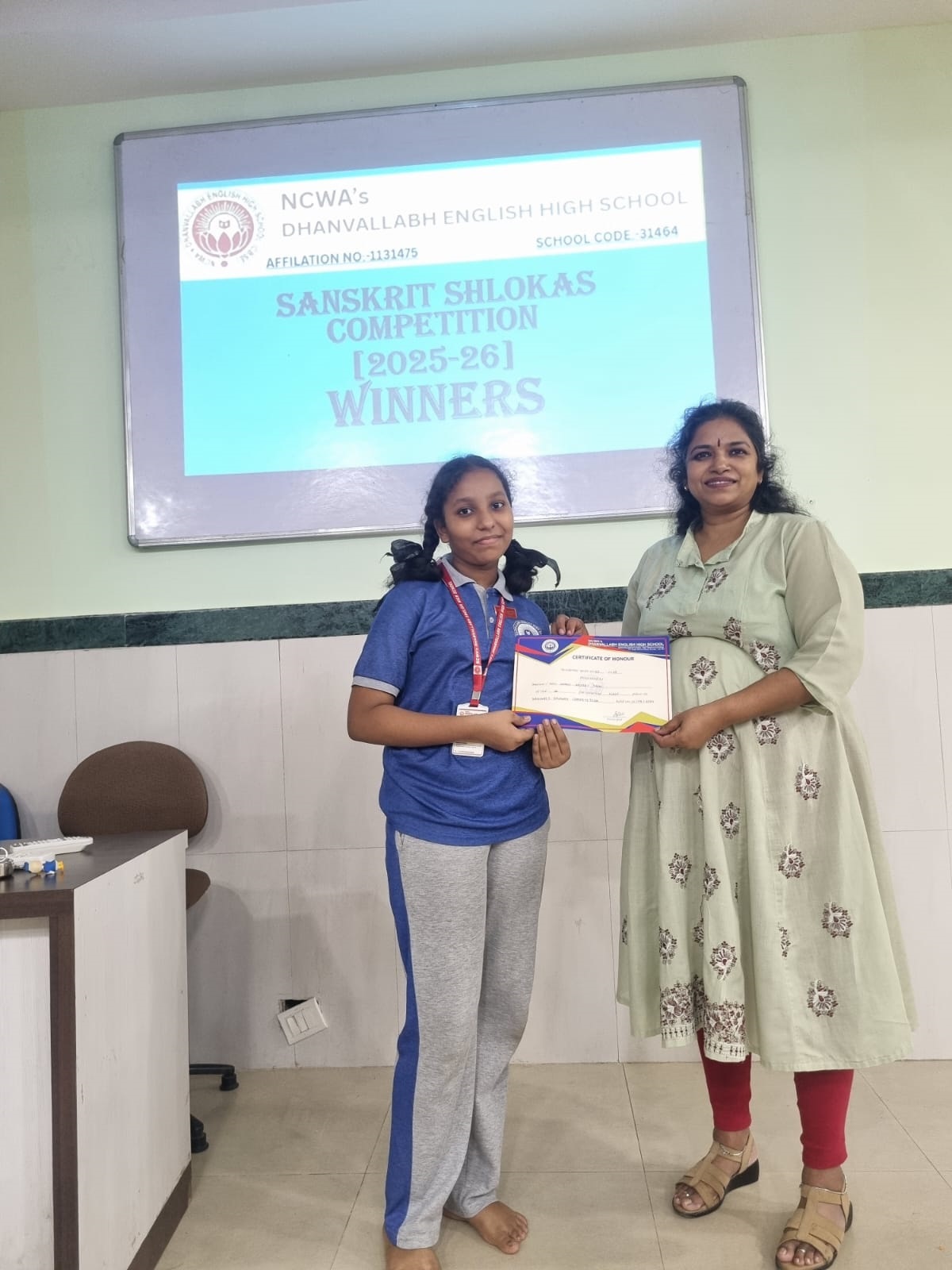 Judges evaluated participants on pronunciation, expression, memorisation and presentation. The winners were felicitated by our Principal Dr. Shyamala Rao, who appreciated the students’ efforts to preserve and promote India’s ancient language.