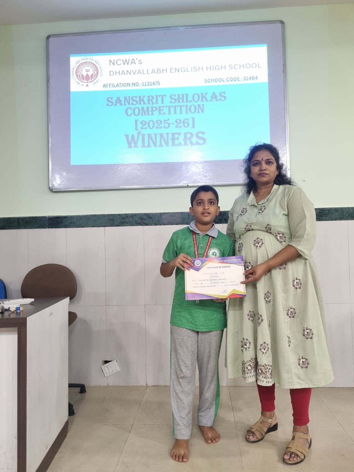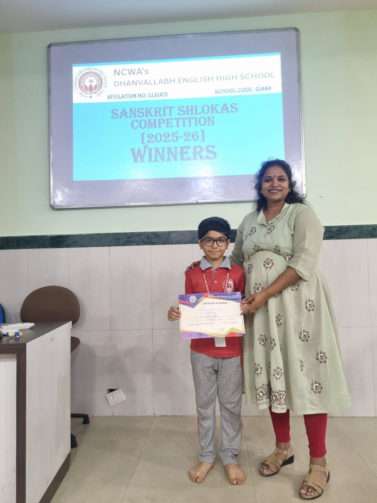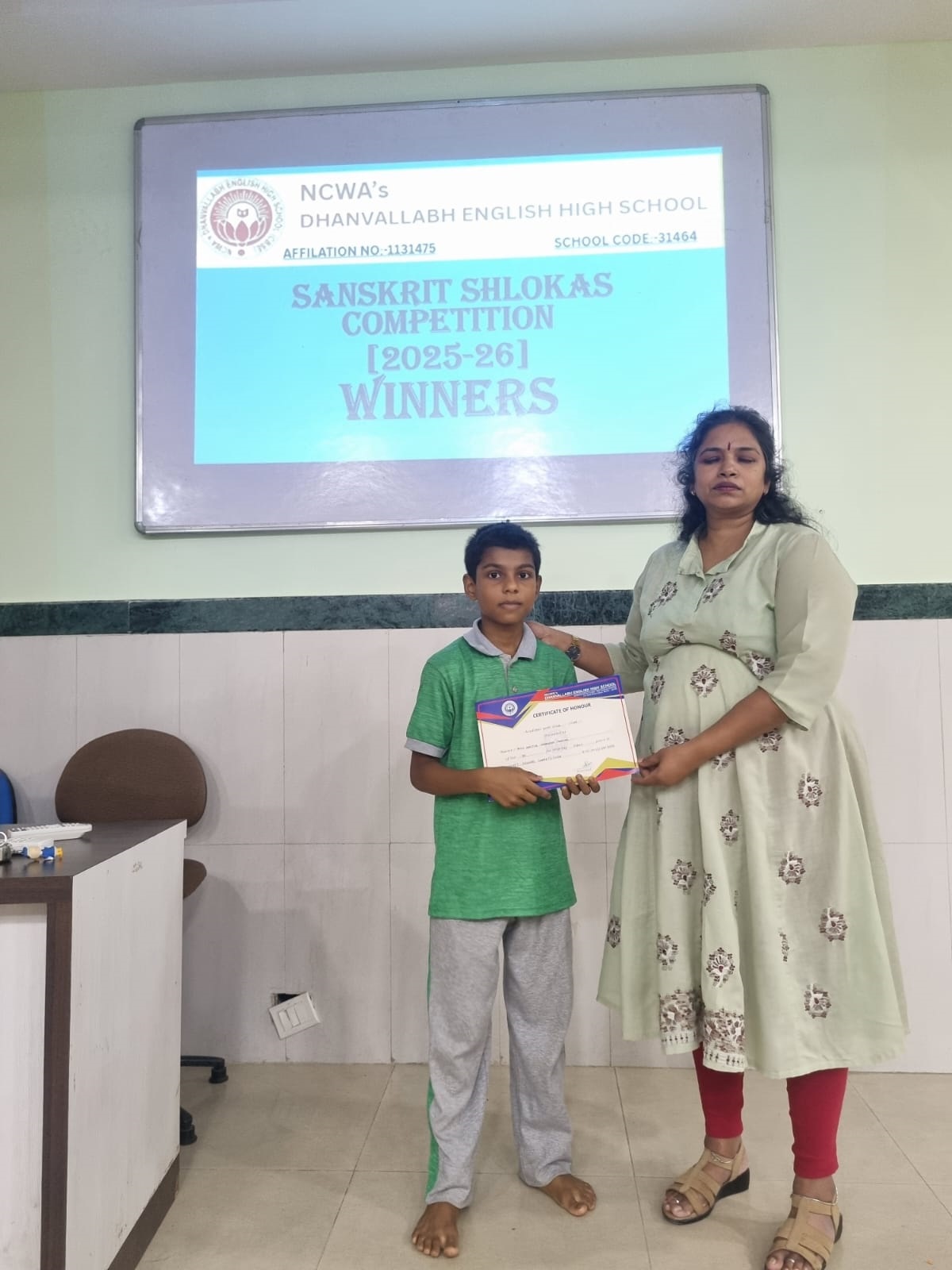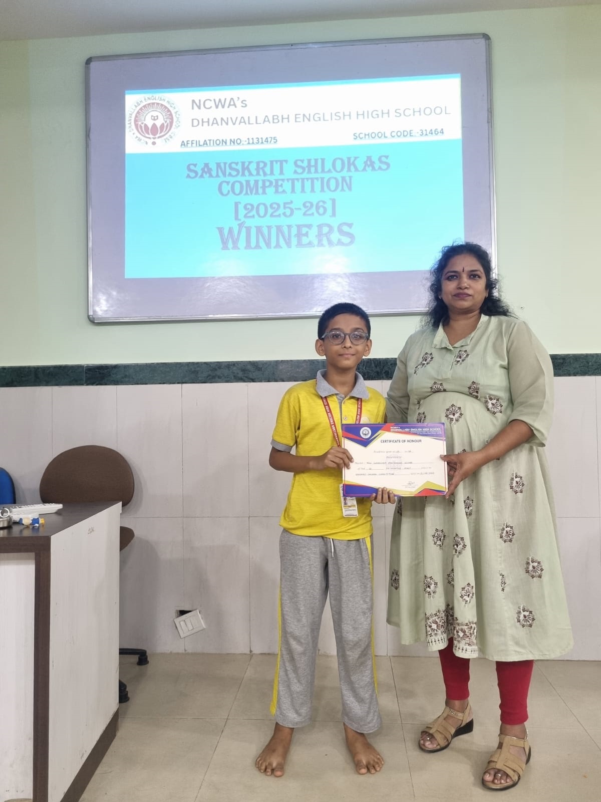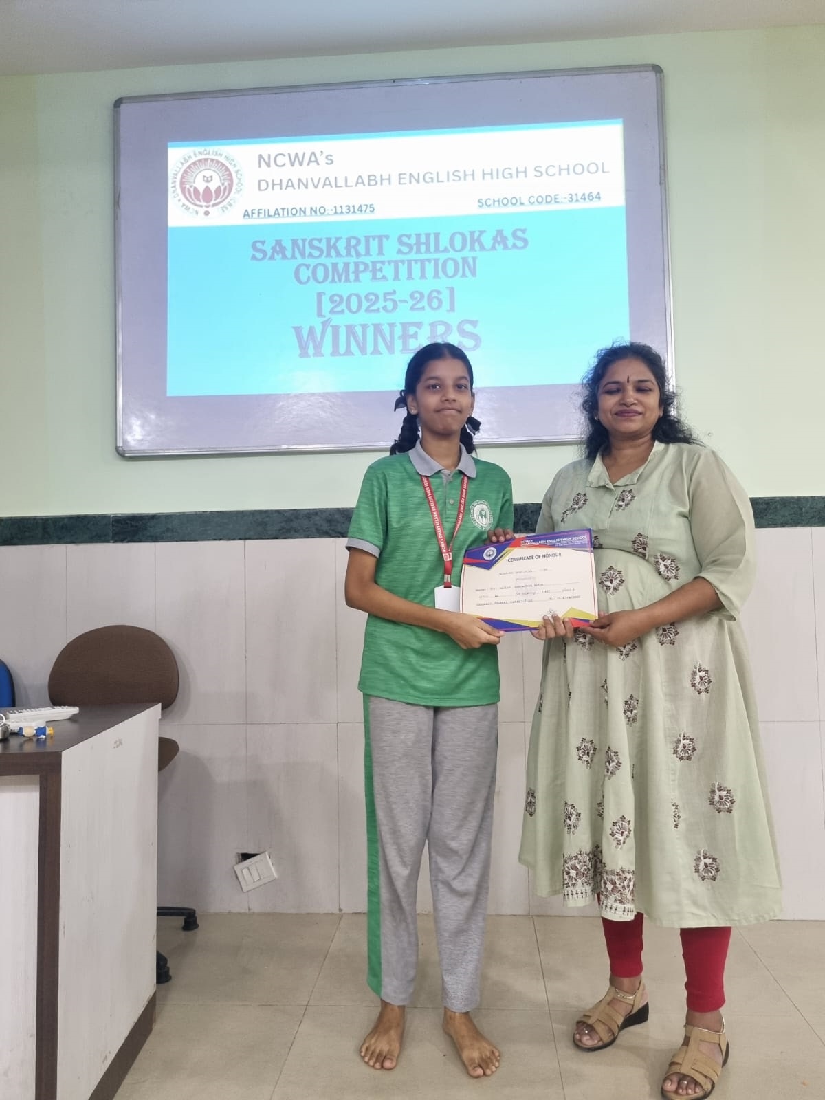 Judges evaluated participants on pronunciation, expression, memorisation and presentation. The winners were felicitated by our Principal Dr. Shyamala Rao, who appreciated the students’ efforts to preserve and promote India’s ancient language.