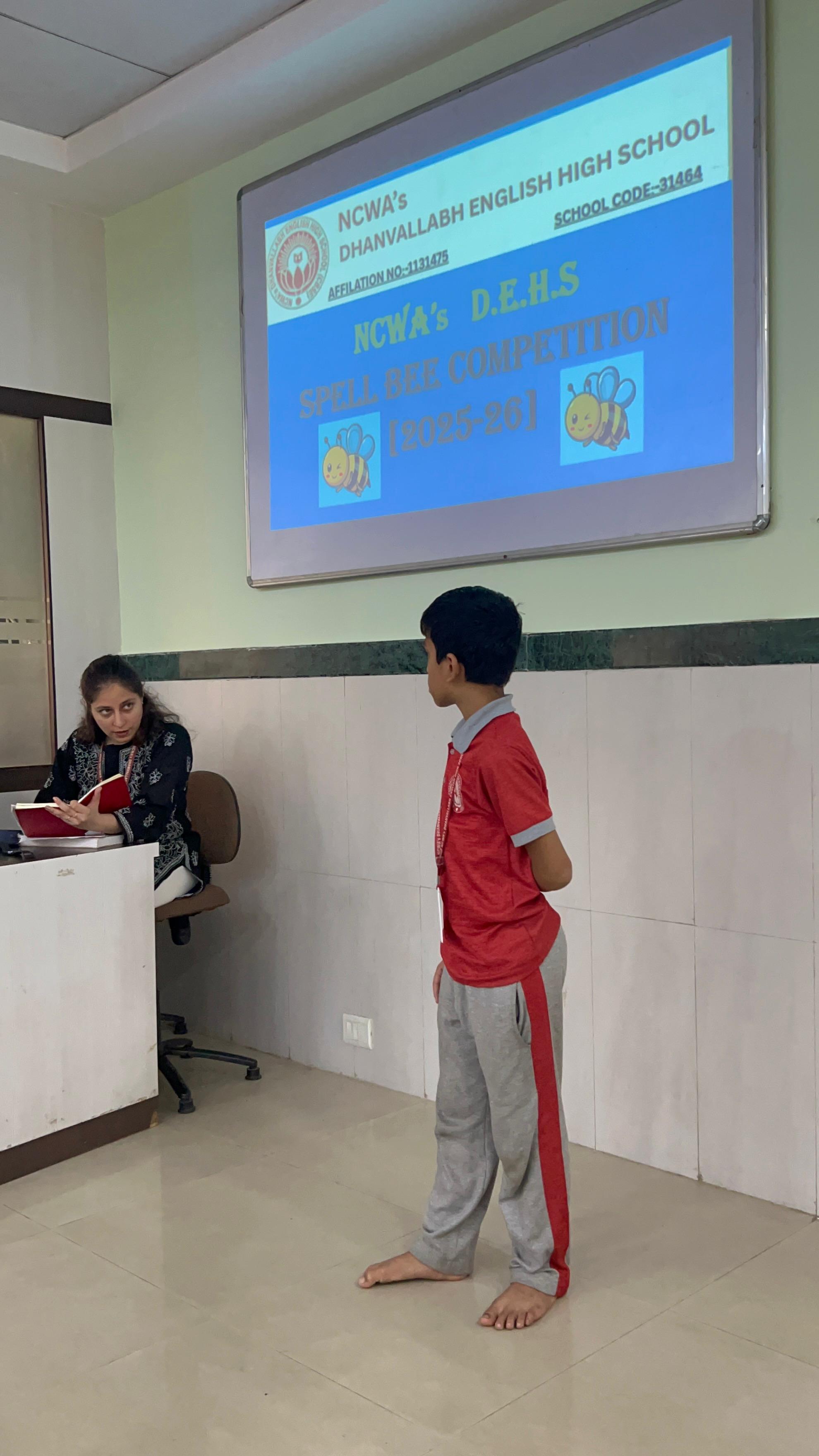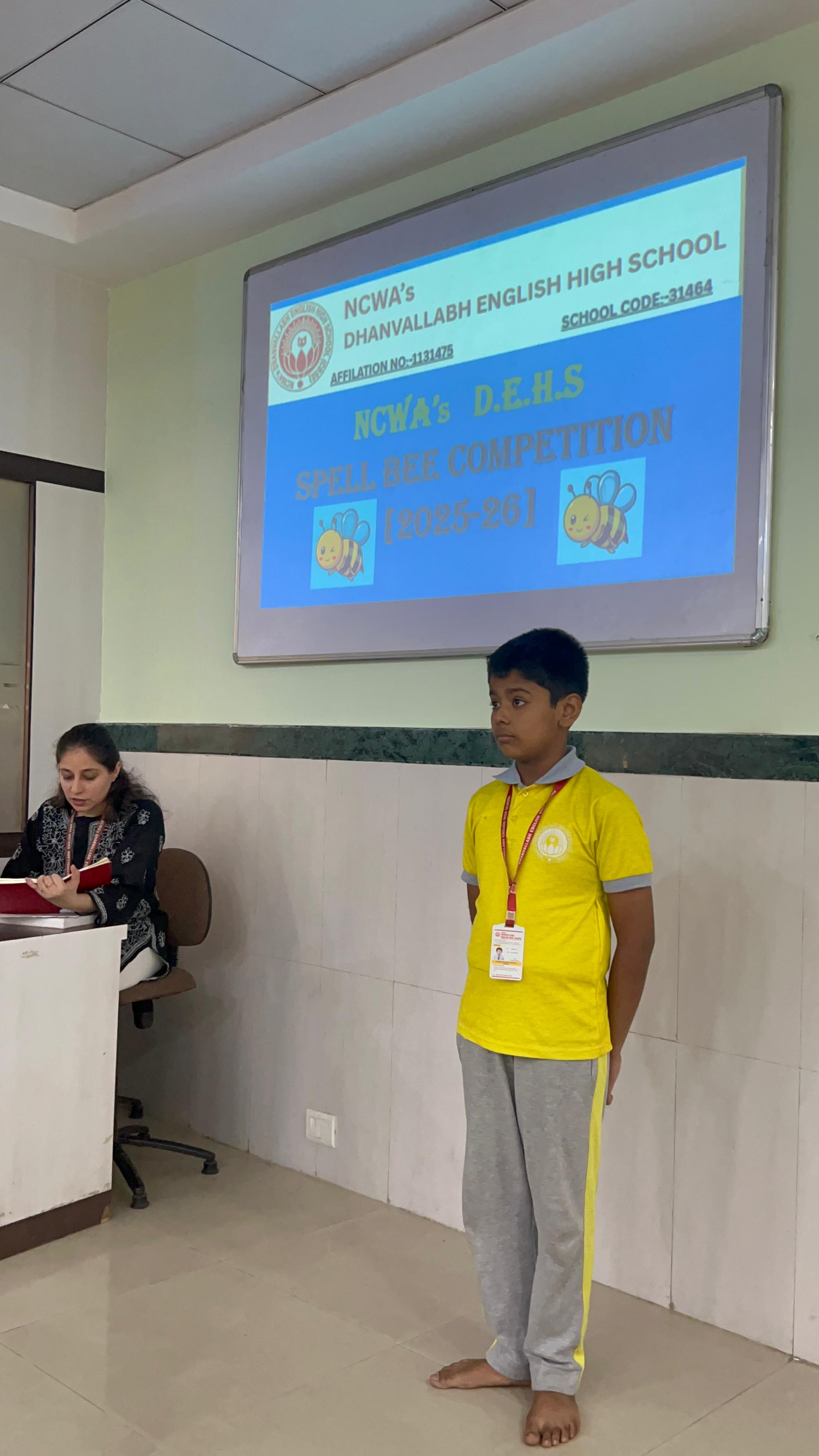 Dhanavallabh School organized an exciting Spell Bee Competition for students from Grade 1 to Grade 9, aimed at enhancing their vocabulary, spelling skills, and confidence in English language.