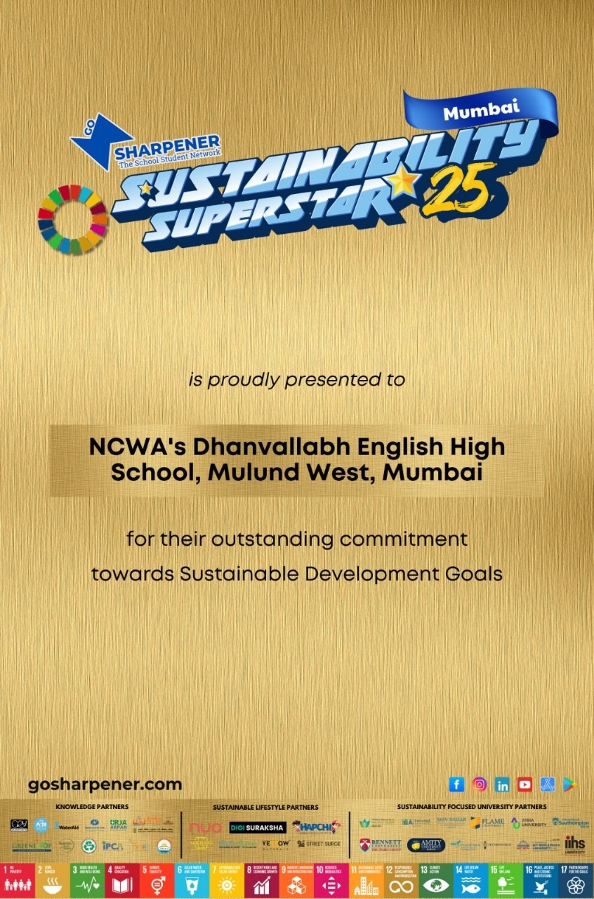 We are thrilled to share that Dhanavallabh School has been honored with the Sustainability Superstar Award for our dedicated efforts in promoting eco-friendly practices and sustainable development.