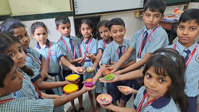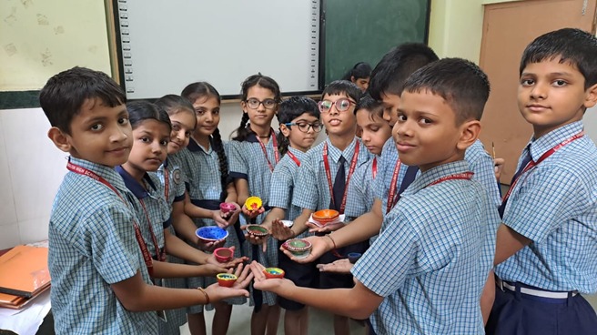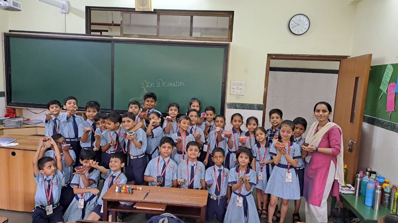 Dhanavallabh School celebrated a Bagless Day with a creative Diya Decoration Activity, where students decorated diyas with vibrant colors and designs. This activity not only marked one of the 10 bagless days but also fostered creativity, cultural awareness, and a sense of festive spirit, making learning a fun, hands-on experience.